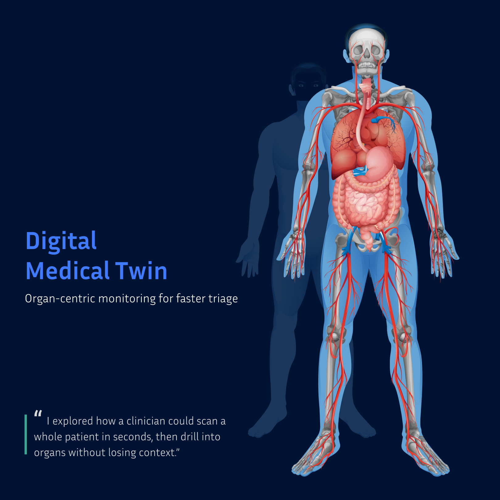 This Medical Digital Twin merges space medicine and terrestrial healthcare into a unified platform, prioritizing preventive care and human survival in extreme environments. By combining IoT, AI, and minimalist design, it empowers astronauts like Nyatsimba Mutota and chronic patients alike to thrive.